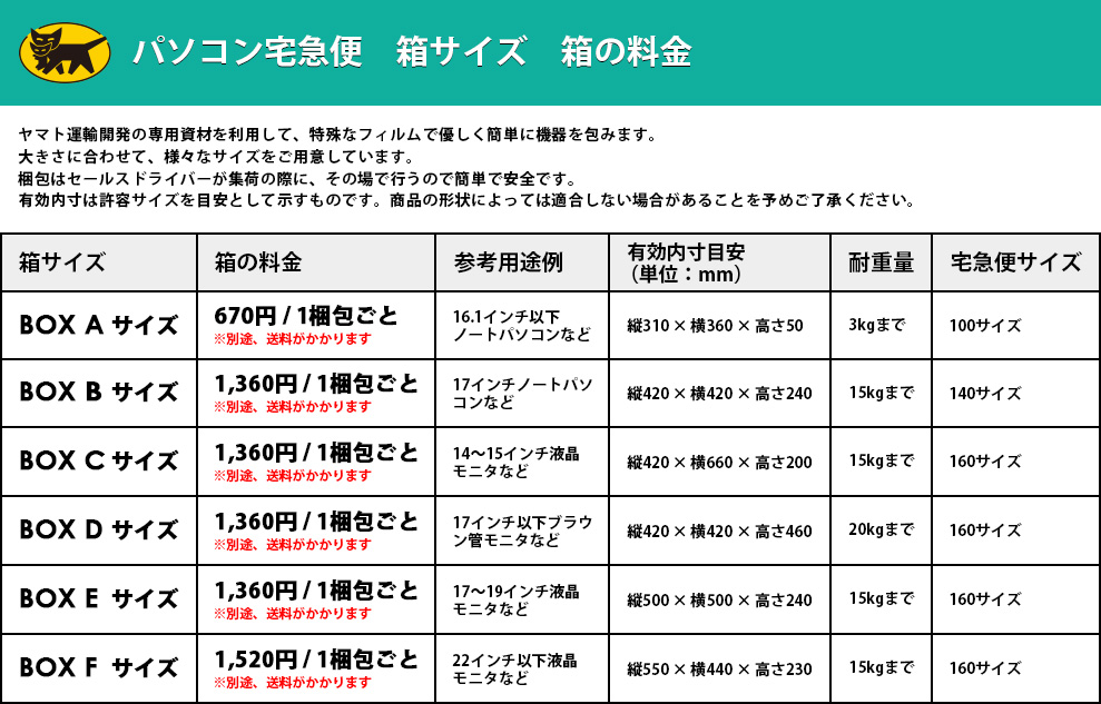 ヤマト運輸のパソコンを安全に送るために作られた専用の箱も、下記フォームから集荷依頼と同時に申し込めます。